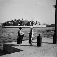 Lucile Perdrizet et une inconnue sur le quai d'un port